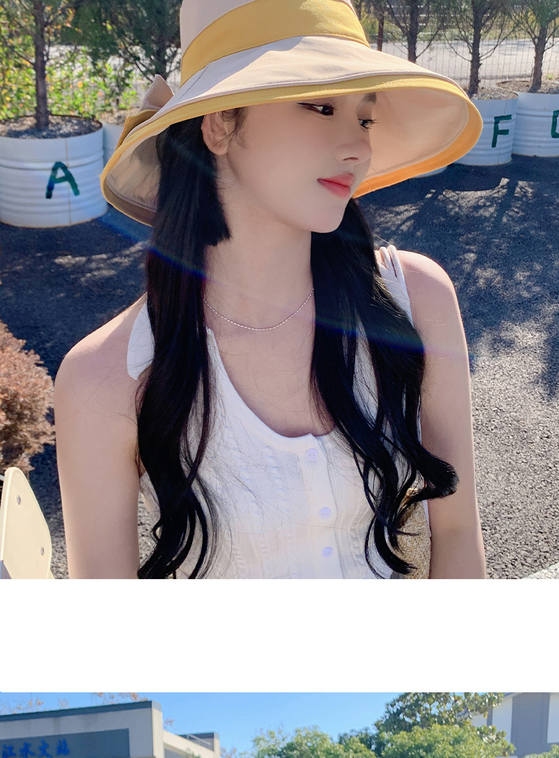 2024 Korean Version Of Spring And Autumn New Cotton Hat Feminine Bow Large Along The Fisherman's Hat Summer Sunscreen Visor